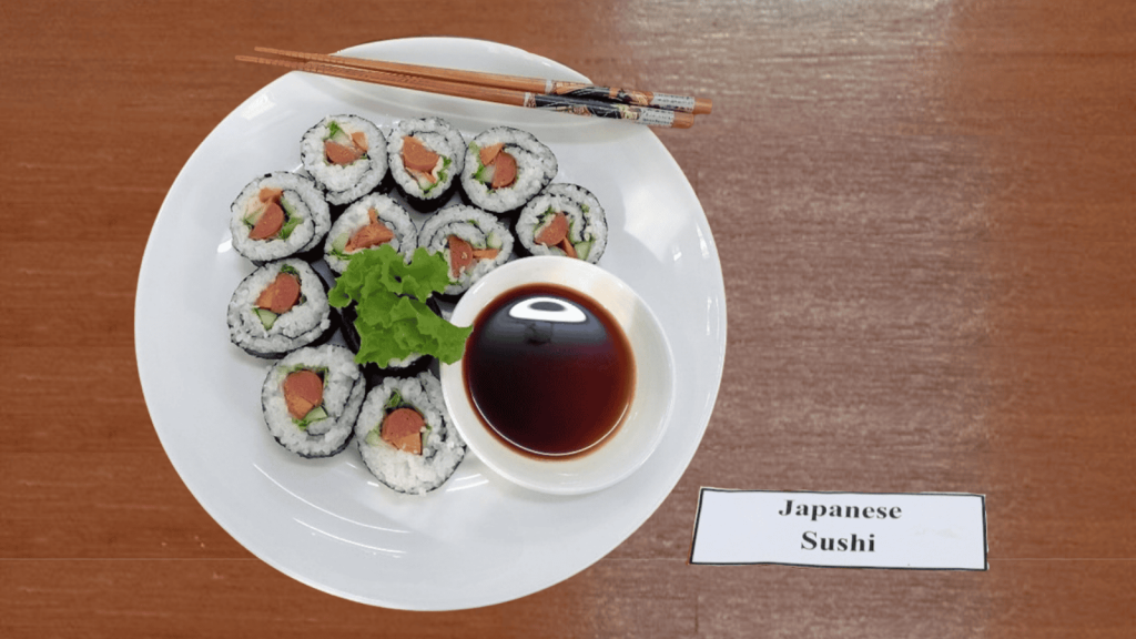 日本語学科では、3年生および4年生が手作りした海苔巻き寿司を販売しており、多くの来場者で賑わっていました。