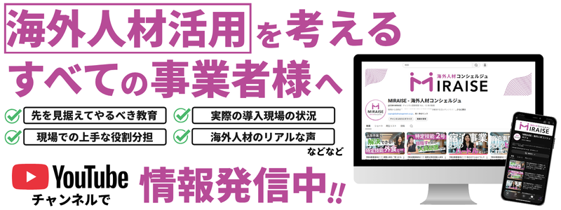 海外人材と宿泊事業者が、互いに信頼し、共に未来を育む。MIRAISEは、そんな“つづく関係”を応援します。単なる人手不足対策としてではなく、“海外人材をともに未来を担うパートナーとして見る視点” をお届けすることを目的に、宿泊事業者の皆さまに向けて、最新情報や現場のリアルな声をわかりやすく発信してまいります。