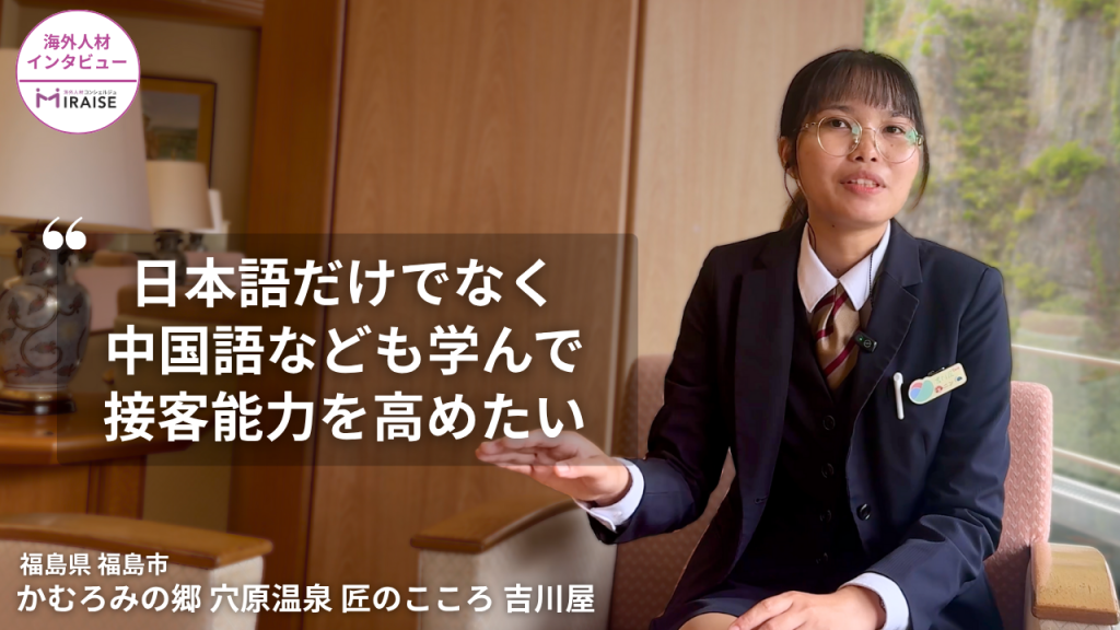 今回は、福島県福島市飯坂町にある老舗旅館「匠のこころ 吉川屋」様でフロントスタッフとして働くミャンマーのヤンゴン外国語大学日本語学科卒業のニンさんにインタビューせていただきましたので、その模様を動画にまとめました。